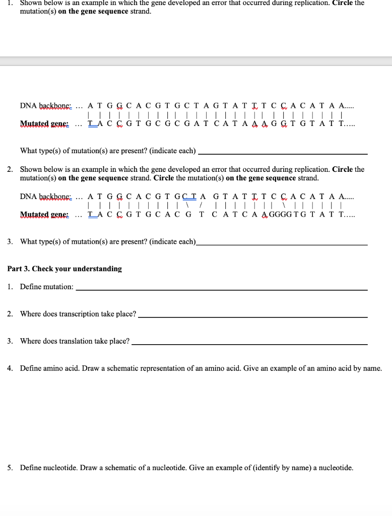 Mutations Worksheet Part 1 Gene Mutations Answer Key Form Fill Out