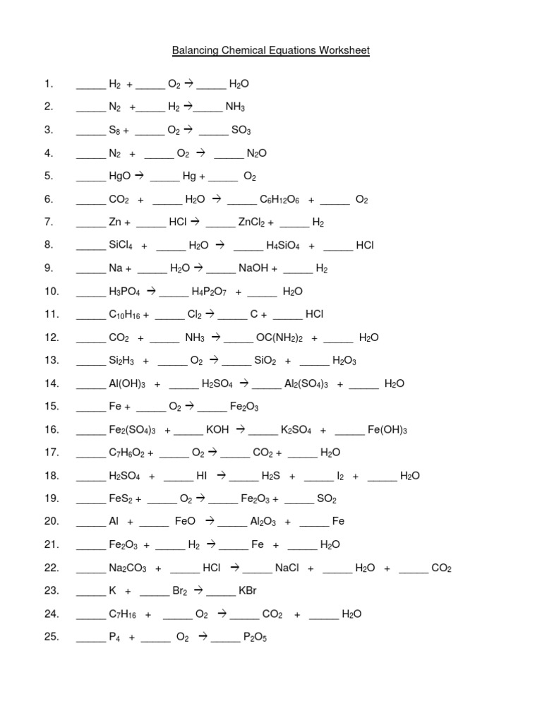 Balancing Chemical Equation Worksheet 1