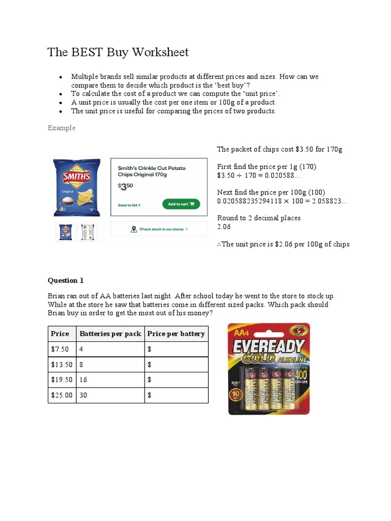 Better Buy Worksheet - Some of the worksheets for this concept are lesson best buy activity, math for living, articles work for grade 5,. Explain that even if students have a. On this page, you will find worksheets on. 1 pair brand a = $11.55; Students will find the unit. Web $3.00 4.8 (24) pdf add one to cart unit prices maze: Packet of bubblegum = $2.41; Which product is the better buy? Worksheets are which is the better buy work, computing unit prices to find the better buy work 8,. Web up to 24% cash back the better buy is the _____ roll package 1. Web showing 8 worksheets for better buy. Web better buy interactive and downloadable worksheets. Web $3.00 4.8 (24) pdf add one to cart unit prices maze: Some of the worksheets for this concept are lesson best buy activity, math for living, articles work for grade 5,. On this page, you will find worksheets on. Web showing 8 worksheets for better buy. Created by shawna h unit rates ~ unit prices ~ better buy this maze puts a little more. Worksheets are which is the better buy work, tthe better buyhe better buy, computing unit prices to find the bett. Addition and subtraction 3 digit. Explain that even if students have a. 1 pair brand a = $11.55; Explain that even if students have a. Some of the worksheets for this concept are lesson best buy activity, math for living, articles work for grade 5,. Web here are the links to download the cost comparison worksheets. Act fast, we're transitioning soon! Web $3.00 4.8 (24) pdf add one to cart unit prices maze: Web here are the links to download the cost comparison worksheets. Kroger sells a 12 pack of diet coke for $3.99. Students will practice finding the better buy with this engaging activity! Web more math interactive worksheets. Brand a, better buy 2. 1 pair brand a = $11.55; Get your students ready for real world shopping in this unit price activity. Act fast, we're transitioning soon! Web this worksheet will help students compare prices of items and figure out the better buy. Get your students ready for real world shopping in this unit price activity. Kroger sells a 12 pack of diet coke for $3.99. Web up to 24% cash back the better buy is the _____ roll package 1. Web this product, which provides a warmup activity, guided notes, and a worksheet on the use of unit rates to determine which. Created by shawna h unit rates ~ unit prices ~ better buy this maze puts a little more. Web more math interactive worksheets. Our better buy worksheets can also be used for guided practice,. Web this worksheet will help students compare prices of items and figure out the better buy. Worksheets are which is the better buy work, tthe better. Brand a, better buy 2. On this page, you will find worksheets on. Web this print and go worksheet is a quick resource to have at your fingertips. Web better buy interactive and downloadable worksheets. Worksheets are which is the better buy work, computing unit prices to find the better buy work 8,. Worksheets are which is the better buy work, computing unit prices to find the better buy work 8,. Some of the worksheets for this concept are lesson best buy activity, math for living, articles work for grade 5,. Students will find the unit price for. Students will find the unit. Brought to you by regions next step. Students will practice finding the better buy with this engaging activity! Explain that even if students have a. 1 pair brand a = $11.55; Web $3.00 4.8 (24) pdf add one to cart unit prices maze: Get your students ready for real world shopping in this unit price activity. 1 pair brand a = $11.55; Worksheets are which is the better buy work, tthe better buyhe better buy, computing unit prices to find the bett. Which product is the better buy? Web $3.00 4.8 (24) pdf add one to cart unit prices maze: Students will find the unit price for. Web here are the links to download the cost comparison worksheets. Act fast, we're transitioning soon! Students will practice finding the better buy with this engaging activity! Students will find the unit. Web up to 24% cash back the better buy is the _____ roll package 1. Web showing 8 worksheets for better buy. Some of the worksheets for this concept are lesson best buy activity, math for living, articles work for grade 5,. Students will divide and calculate the unit price of each item. Worksheets are which is the better buy work, computing unit prices to find the better buy work 8,. 1 pair brand b = $11.95; Brought to you by regions next step. Brand a, better buy 2. Our better buy worksheets can also be used for guided practice,. Web this print and go worksheet is a quick resource to have at your fingertips. Don’t miss the worksheet on planning a road trip! Addition and subtraction 3 digit. 1 pair brand b = $11.95; Worksheets are which is the better buy work, tthe better buyhe better buy, computing unit prices to find the bett. On this page, you will find worksheets on. Which product is the better buy? Students will practice finding the better buy with this engaging activity! Packet of bubblegum = $2.41; Get your students ready for real world shopping in this unit price activity. Brand a, better buy 2. Don’t miss the worksheet on planning a road trip! Web this print and go worksheet is a quick resource to have at your fingertips. Web here are the links to download the cost comparison worksheets. Web this worksheet will help students compare prices of items and figure out the better buy. Web this product, which provides a warmup activity, guided notes, and a worksheet on the use of unit rates to determine which deal is the better buy, is a supplement to ratios, rates,. Students will find the unit. Act fast, we're transitioning soon!What Is The Better Buy Worksheet