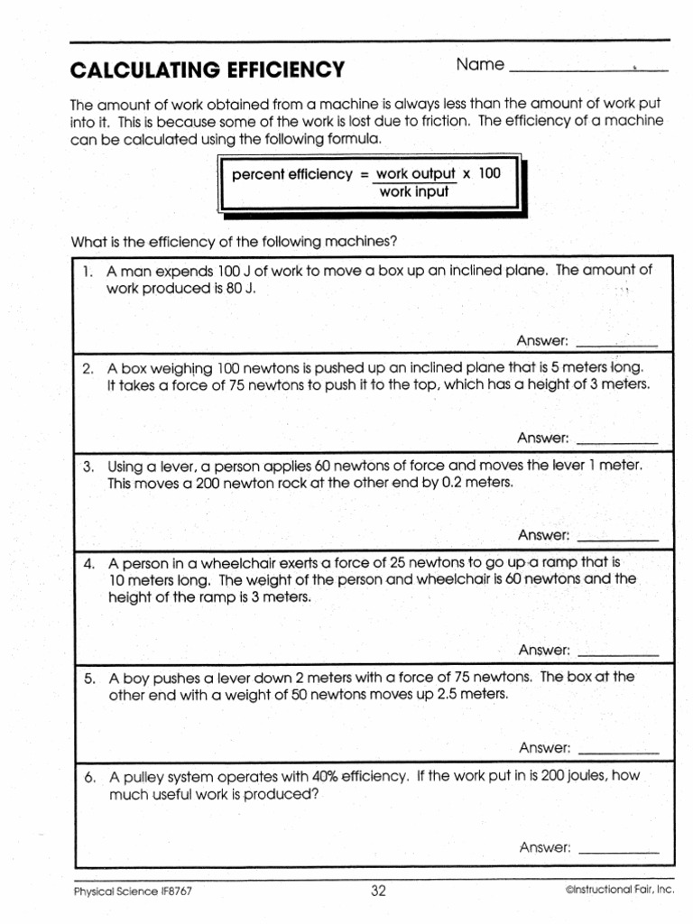 9 Calculating Efficiency Worksheet And Answers /