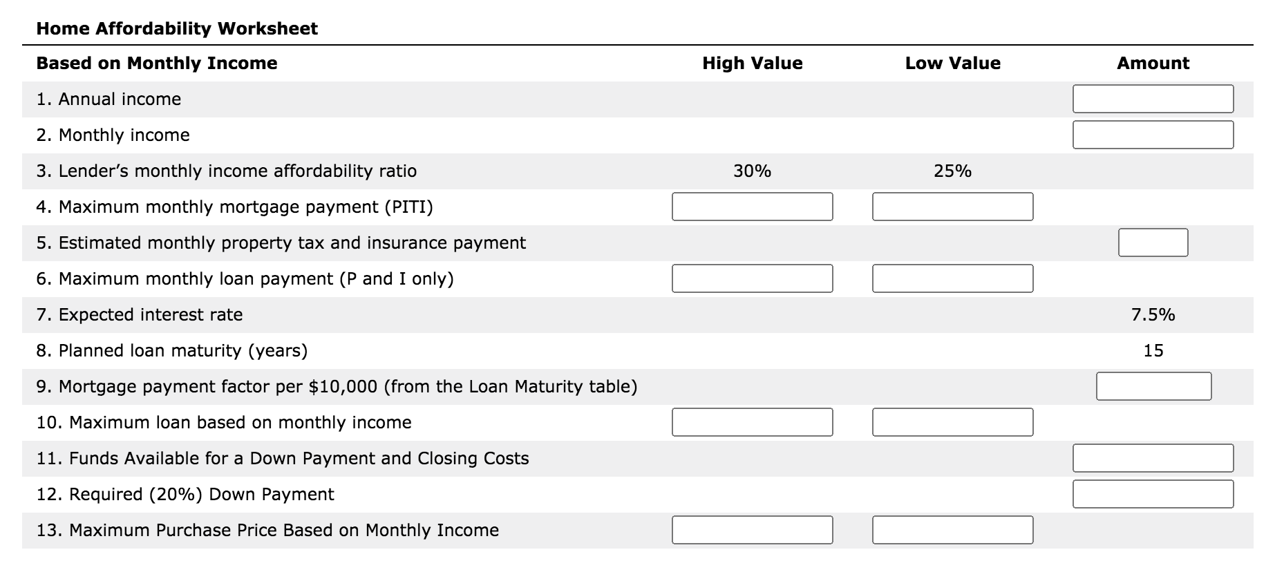 Can I Afford This House Worksheet