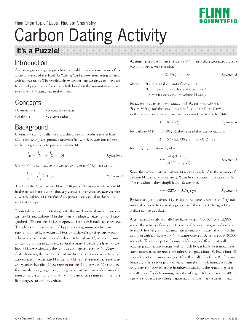 Carbon Dating Activity It’s a Puzzle!—ChemTopic™ Lab Activity