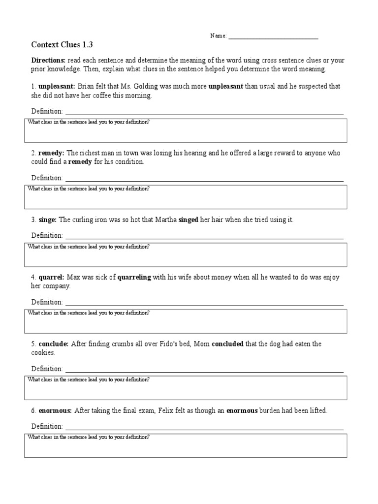 Context Clue Worksheets