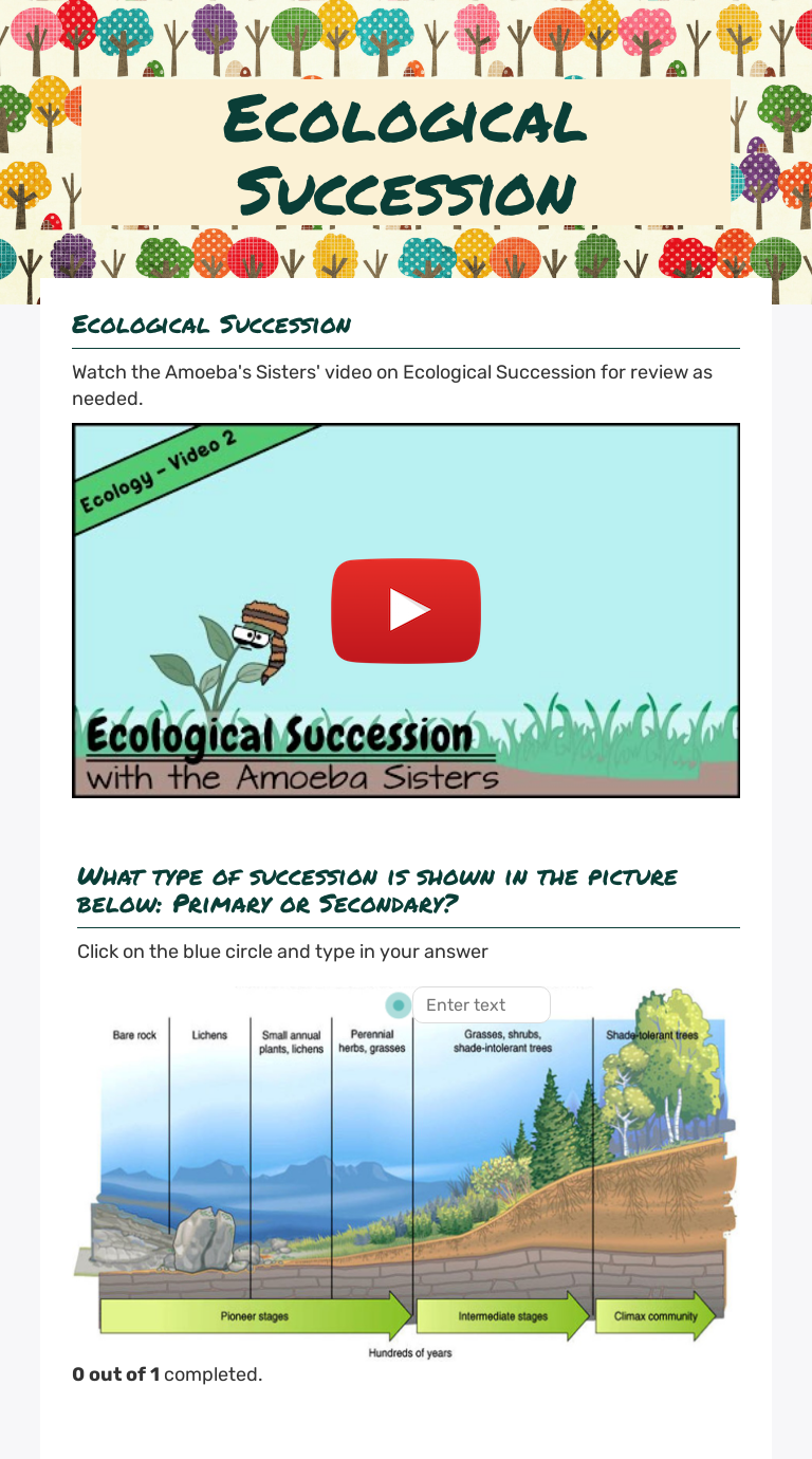 Ecological Succession Interactive Worksheet by Lee Braun Wizer.me