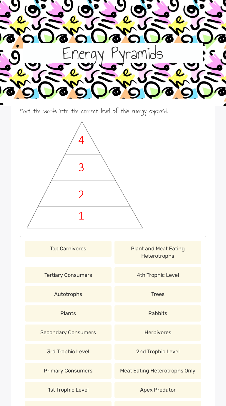 Energy pyramid worksheet