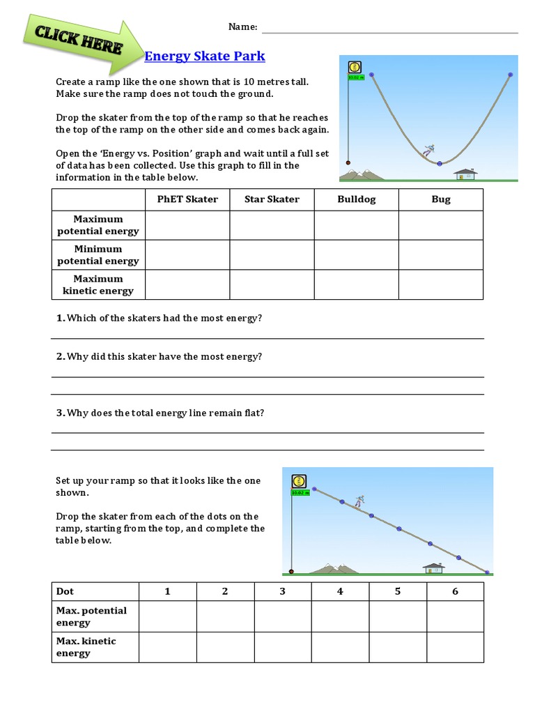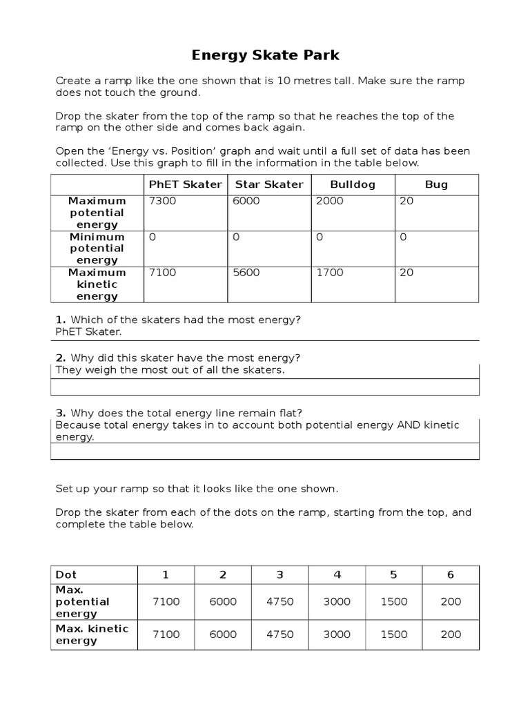 Energy Skate Park Worksheet Answer Key • Suggested and Clear