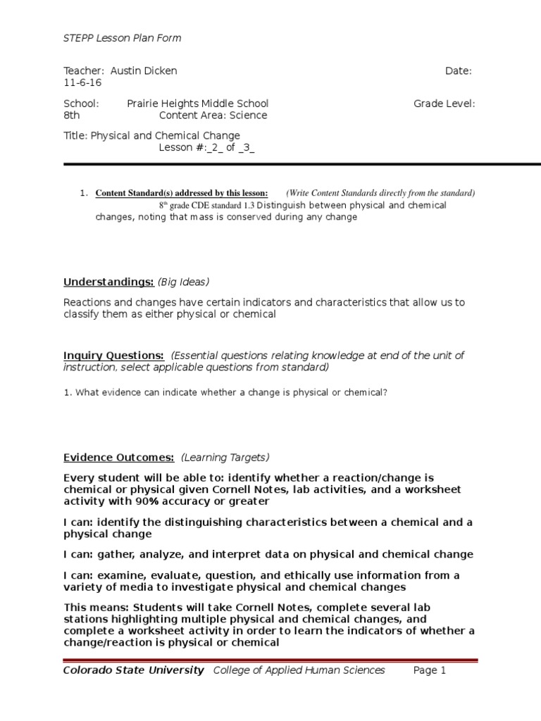 Evidence Of Chemical Reactions Worksheet - Sequence of activities diagnostic probe. Web showing 8 worksheets for evidence of a chemical reaction. Web evidence of chemical reactions include changes in a. Web evidence of a chemical change (reaction) precipitate transfer of thermal energy (gets warmer or cooler) gas evolution (bubbles or odor) light balancing a chemical equation balance one element at a time, making sure there are the same number of atoms of that element on each side of the equation. In a chemical reaction, bonds break in reactants and new bonds form in products. Some of the worksheets for this concept are reaction yes or no, vanderbilt student volunteers for science evidence of a, chemical reactions name, chemical reactions, chemical reactions, physical and chemical changes work,. Web this worksheet includes the definitions of physical and chemical change, as well as the different observations that provide evidence for one type of reaction or the other. The student is asked to evaluate a number of different substances that have undergone changes. Release of heat or light. Use evidence from observations to identify and describe factors that influence reaction rates: This set includes 32 different questions. Web showing 8 worksheets for evidence of a chemical reaction. When a chemical reaction occurs, an observable change can often be seen during the progress of the reaction. Worksheets are please sign in or sign up to th. Identify the evidence for chemical reactions. Some of the worksheets for this concept are reaction yes or no, vanderbilt student volunteers for science evidence of a, chemical reactions name, chemical reactions, chemical reactions, physical and chemical changes work,. Make sure to write any evidence of any evidence of a chemical reaction with sufficient detail to help you. Use evidence from observations to identify and describe factors. Evidence that a chemical reaction has occurred include a change in color, a change in temperature, the production of a gas, or the formation of a solid precipitate. This set includes 32 different questions. Release of heat or light. Web evidence of chemical reactions include changes in a. Topics covered include physical and chemical changes, reactants and products, inferences, observations. In order for this to occur, the chemical bonds of the substances break, and the atoms that compose them separate and rearrange themselves into new substances with new chemical bonds. Make sure to write any evidence of any evidence of a chemical reaction with sufficient detail to help you. Evidence that a chemical reaction has occurred include a change in. Evidence of a reaction learning objective — based on ngss and state standards — delivers improved student engagement and academic performance in your classroom, as demonstrated by research. Web evidence of chemical reactions include changes in a. Web evidence of a chemical change (reaction) precipitate transfer of thermal energy (gets warmer or cooler) gas evolution (bubbles or odor) light balancing. Worksheets are chapter 9 chemical reactions answers, physical and chemical changes work, s8p. Web evidence of a chemical change (reaction) precipitate transfer of thermal energy (gets warmer or cooler) gas evolution (bubbles or odor) light balancing a chemical equation balance one element at a time, making sure there are the same number of atoms of that element on each side. Web evidence of a chemical change (reaction) precipitate transfer of thermal energy (gets warmer or cooler) gas evolution (bubbles or odor) light balancing a chemical equation balance one element at a time, making sure there are the same number of atoms of that element on each side of the equation. When a chemical reaction occurs, an observable change can often. This set includes 32 different questions. Web evidence of a chemical change (reaction) precipitate transfer of thermal energy (gets warmer or cooler) gas evolution (bubbles or odor) light balancing a chemical equation balance one element at a time, making sure there are the same number of atoms of that element on each side of the equation. Two of the above. Worksheets are chapter 9 chemical reactions answers, physical and chemical changes work, s8p. Worksheets are please sign in or sign up to th. Evidence of chemical reactions clear all sort by: Web this worksheet includes the definitions of physical and chemical change, as well as the different observations that provide evidence for one type of reaction or the other. Once. In a chemical change, new substances are formed. Web investigate and describe the occurrence of chemical reactions using the following evidence: Students will perform six reactions and identify the evidence of a chemical change for each reaction. When a chemical reaction occurs, an observable change can often be seen during the progress of the reaction. Web showing 8 worksheets for. Release of heat or light. Formation of a precipitate or gas; The student is asked to evaluate a number of different substances that have undergone changes. Particles are rearranged in a chemical reaction. Topics covered include physical and chemical changes, reactants and products, inferences, observations and more! Use this activity in your classroom for review, partner work, rotations/stations, and independent study. Sequence of activities diagnostic probe. Worksheets are please sign in or sign up to th. In order for this to occur, the chemical bonds of the substances break, and the atoms that compose them separate and rearrange themselves into new substances with new chemical bonds. Evidence that a chemical reaction has occurred include a change in color, a change in temperature, the production of a gas, or the formation of a solid precipitate. Evidence of a reaction learning objective — based on ngss and state standards — delivers improved student engagement and academic performance in your classroom, as demonstrated by research. Evidence of a chemical