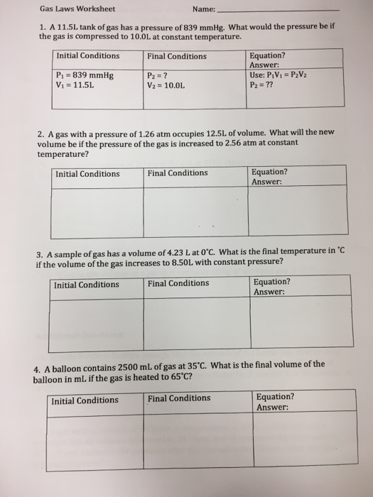 Solved Gas Laws Worksheet Name 1. A 11.5L tank of gas has a