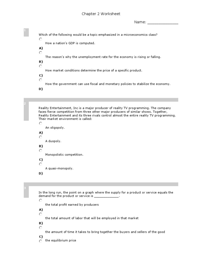 Chapter 2 Worksheet Gross Domestic Product Macroeconomics