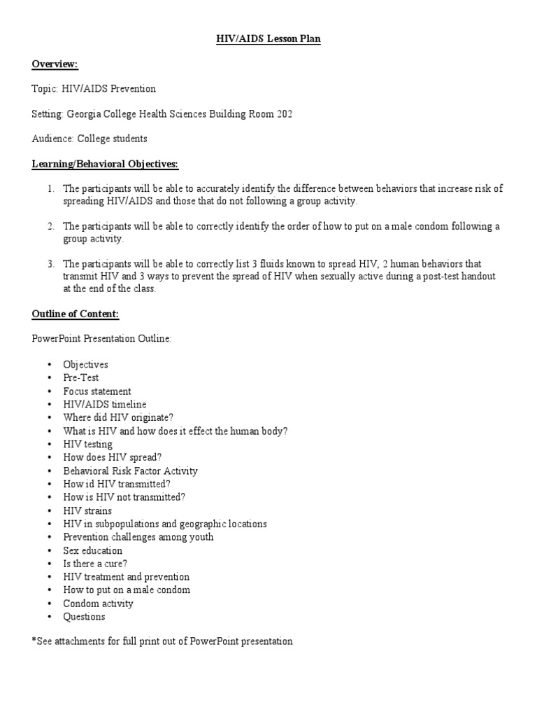 hiv lesson plan 2 Hiv/Aids Sexual Intercourse