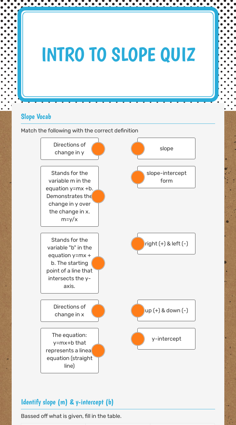 Intro to slope quiz Interactive Worksheet by Alexandria Ivol Wizer.me