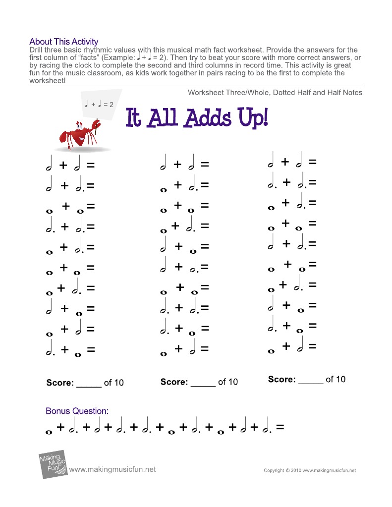 It All Adds Up Music Worksheet Answers Alphabet Worksheets