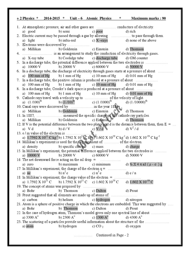 +2 Physics one mark EM MCQ Answers Vol II PDF Photoelectric Effect
