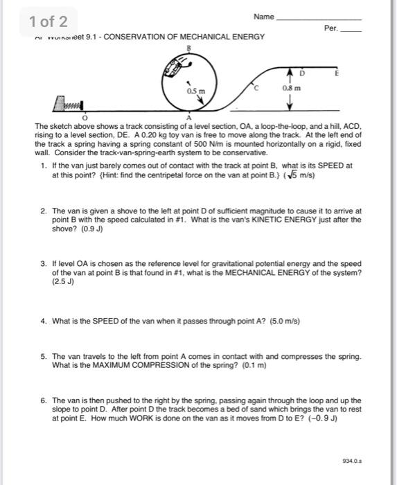 Solved AP Worksheet 9.1 CONSERVATION OF MECHANICAL ENERGY,