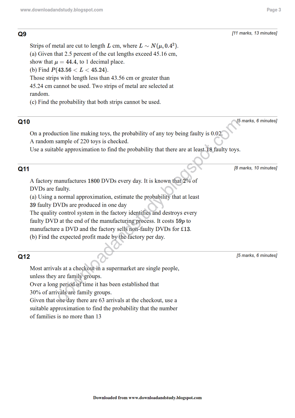 Download & Study AS Statistics Normal Distribution Revision Test
