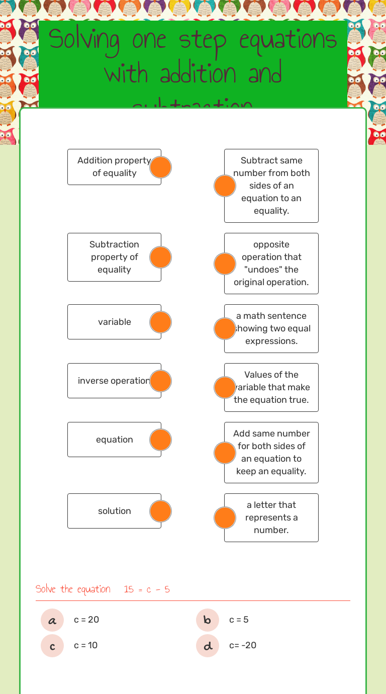 One Step Equations With Addition And Subtraction Worksheet - Web this is a set of guided notes on solving one step equations using addition and subtraction. Adding and subtracting 1) y 6 20 2) x 10 12 12 3) z 15 4) 2 n 16 5) a 4 14 6) m 5 10 7) 4 b. There are two versions of practice problems to make it simple to. Web live worksheets > english. Solve simple equations involving addition and subtraction. Web ©i i2 o0b1b2 o 8k 6u ztka 1 vslovfft mw0a yr 1er yl1lwc8.j d la 8l 9l u crwikgihjtos o dr ceusvenr ivreuds.o t 6m aa8dgei uwoilt phn vi yncflipn4i ntker tavl g6e 5b 0rnaj. Solve simple equations using basic operations. The simplest equations can be solved with just one. Web in this resource, students will work to solve 18 one step equations using only addition and subtraction.this activity comes with two digital and one printable version! Solve simple equations using basic operations. There are two versions of practice problems to make it simple to. Web live worksheets > english. Solve simple equations involving addition and subtraction. Web in this resource, students will work to solve 18 one step equations using only addition and subtraction.this activity comes with two digital and one printable version! Web ©i i2 o0b1b2 o 8k 6u ztka 1 vslovfft mw0a yr 1er yl1lwc8.j d la 8l 9l u crwikgihjtos o dr ceusvenr ivreuds.o t 6m aa8dgei uwoilt phn vi yncflipn4i ntker tavl g6e 5b 0rnaj. There are two versions of practice problems to make it simple to. Web this is a set of guided notes on solving one step. There are two versions of practice problems to make it simple to. Web in this resource, students will work to solve 18 one step equations using only addition and subtraction.this activity comes with two digital and one printable version! Solve simple equations using basic operations. Web this is a set of guided notes on solving one step equations using addition. There are two versions of practice problems to make it simple to. Solve simple equations involving addition and subtraction. The simplest equations can be solved with just one. Web ©i i2 o0b1b2 o 8k 6u ztka 1 vslovfft mw0a yr 1er yl1lwc8.j d la 8l 9l u crwikgihjtos o dr ceusvenr ivreuds.o t 6m aa8dgei uwoilt phn vi yncflipn4i ntker. Adding and subtracting 1) y 6 20 2) x 10 12 12 3) z 15 4) 2 n 16 5) a 4 14 6) m 5 10 7) 4 b. Web live worksheets > english. Web ©i i2 o0b1b2 o 8k 6u ztka 1 vslovfft mw0a yr 1er yl1lwc8.j d la 8l 9l u crwikgihjtos o dr ceusvenr ivreuds.o t. There are two versions of practice problems to make it simple to. Web ©i i2 o0b1b2 o 8k 6u ztka 1 vslovfft mw0a yr 1er yl1lwc8.j d la 8l 9l u crwikgihjtos o dr ceusvenr ivreuds.o t 6m aa8dgei uwoilt phn vi yncflipn4i ntker tavl g6e 5b 0rnaj. Adding and subtracting 1) y 6 20 2) x 10 12 12. Solve simple equations using basic operations. The simplest equations can be solved with just one. Adding and subtracting 1) y 6 20 2) x 10 12 12 3) z 15 4) 2 n 16 5) a 4 14 6) m 5 10 7) 4 b. Web in this resource, students will work to solve 18 one step equations using only. Solve simple equations involving addition and subtraction. Web this is a set of guided notes on solving one step equations using addition and subtraction. The simplest equations can be solved with just one. Web ©i i2 o0b1b2 o 8k 6u ztka 1 vslovfft mw0a yr 1er yl1lwc8.j d la 8l 9l u crwikgihjtos o dr ceusvenr ivreuds.o t 6m aa8dgei. Web in this resource, students will work to solve 18 one step equations using only addition and subtraction.this activity comes with two digital and one printable version! Web ©i i2 o0b1b2 o 8k 6u ztka 1 vslovfft mw0a yr 1er yl1lwc8.j d la 8l 9l u crwikgihjtos o dr ceusvenr ivreuds.o t 6m aa8dgei uwoilt phn vi yncflipn4i ntker tavl. Solve simple equations involving addition and subtraction. Web live worksheets > english. The simplest equations can be solved with just one. Solve simple equations using basic operations. Web ©i i2 o0b1b2 o 8k 6u ztka 1 vslovfft mw0a yr 1er yl1lwc8.j d la 8l 9l u crwikgihjtos o dr ceusvenr ivreuds.o t 6m aa8dgei uwoilt phn vi yncflipn4i ntker tavl. Web in this resource, students will work to solve 18 one step equations using only addition and subtraction.this activity comes with two digital and one printable version! Web live worksheets > english. Adding and subtracting 1) y 6 20 2) x 10 12 12 3) z 15 4) 2 n 16 5) a 4 14 6) m 5 10 7) 4 b. Solve simple equations using basic operations. Web this is a set of guided notes on solving one step equations using addition and subtraction. The simplest equations can be solved with just one. There are two versions of practice problems to make it simple to. Web ©i i2 o0b1b2 o 8k 6u ztka 1 vslovfft mw0a yr 1er yl1lwc8.j d la 8l 9l u crwikgihjtos o dr ceusvenr ivreuds.o t 6m aa8dgei uwoilt phn vi yncflipn4i ntker tavl g6e 5b 0rnaj. Solve simple equations involving addition and subtraction. Web live worksheets > english. Adding and subtracting 1) y 6 20 2) x 10 12 12 3) z 15 4) 2 n 16 5) a 4 14 6) m 5 10 7) 4 b. The simplest equations can be solved with just one. Solve simple equations using basic operations. Web in this resource, students will work to solve 18 one step equations using only addition and subtraction.this activity comes with two digital and one printable version! Solve simple equations involving addition and subtraction. Web this is a set of guided notes on solving one step equations using addition and subtraction.OneStep Equations Addition and Subtraction EdBoost