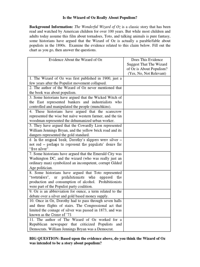 Oz Worksheet The Wonderful Wizard Of Oz Dorothy Gale Free 30day