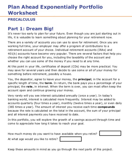 Solved Name Date Plan Ahead Exponentially Portfolio