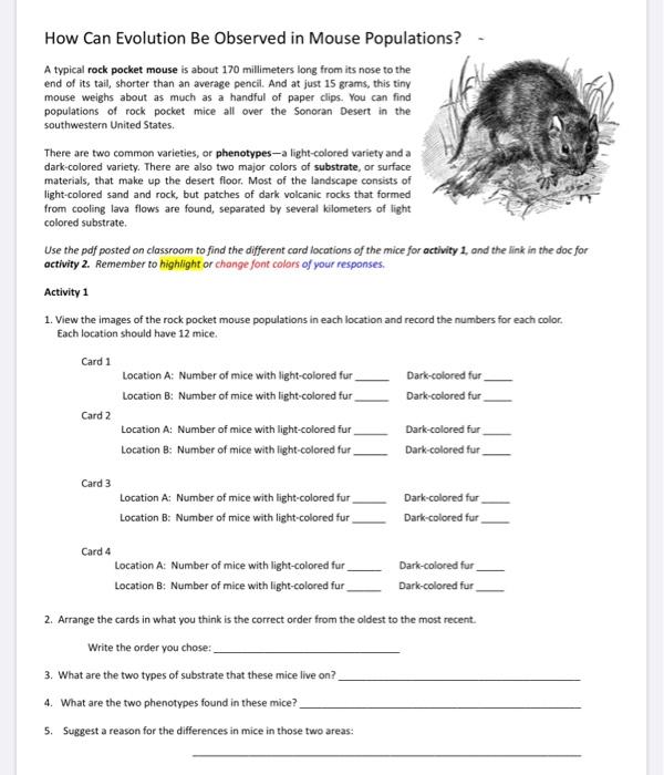 Rock Pocket Mouse Worksheet - Web examine the population of rock pocket mice populations over time. Web students watch a short film and complete a worksheet and graphing exercise that reinforces the concepts of variation and natural selection. This assignment requires students to take the roles. Web rocket pocket mouse activity. The line graph is about the. This one page worksheet has seven questions and will give your students practice analyzing data from a data table and line graph. Web the rock pocket mice of southwestern united states have demonstrated a very clear and interpretable case for microevolution. This activity explores physical and genetic evolutionary changes in rock pocket mouse populations, as discussed in the short film the making of the. The valley of fire in new mexico, united states. Web in this activity, students explore fur color variation in rock pocket mice populations by analyzing and comparing short sequences of dna to identify mutations. Natural selection and adaptation video • supplies for creating bar graphs. Web the rock pocket mouse shows how different gen subjects: Web examine the population of rock pocket mice populations over time. The video can be found on youtube via the. Web students watch a short film and complete a worksheet and graphing exercise that reinforces the concepts of variation. Web the rock pocket mice of southwestern united states have demonstrated a very clear and interpretable case for microevolution. Go to this resource » Answer the following ques&ons based on the material presented in the rock pocket mouse video:h#ps:// for your answers:. This assignment requires students to take the roles. Web should i purchase ttypes of rocks sortby this one. Go to this resource » Natural selection and adaptation video • supplies for creating bar graphs. The valley of fire in new mexico, united states. Web should i purchase ttypes of rocks sortby this one page document allows students to sort facts and information about rocks into one of the three types of rocks: Web this resource includes 6 questions. Include an explanation of the causes behind the changes (hint: Web examine the population of rock pocket mice populations over time. This assignment requires students to take the roles. This one page worksheet has seven questions and will give your students practice analyzing data from a data table and line graph. Biology, general science, science grades: The valley of fire in new mexico, united states. Web should i purchase ttypes of rocks sortby this one page document allows students to sort facts and information about rocks into one of the three types of rocks: Web the rock pocket mice of southwestern united states have demonstrated a very clear and interpretable case for microevolution. Web • describe. Allele and phenotype frequencies in rock pocket mouse. The line graph is about the. This assignment requires students to take the roles. Natural selection and adaptation video • supplies for creating bar graphs. The video can be found on youtube via the. Web • describe what happened to the rock pocket mouse population in location b over time (three sentences). Web 1 rock pocket mouse video questions direc&ons: Web rocket pocket mouse activity. Go to this resource » Worksheets, handouts, movie guides ngss: The video can be found on youtube via the. Web examine the population of rock pocket mice populations over time. This one page worksheet has seven questions and will give your students practice analyzing data from a data table and line graph. Web rocket pocket mouse activity. Web the rock pocket mice of southwestern united states have demonstrated a very. Answer the following ques&ons based on the material presented in the rock pocket mouse video:h#ps:// for your answers:. This assignment requires students to take the roles. This assignment requires students to take the roles. Of mice and all other organisms the rock pocket mouselives in a desert ecosystem: Web examine the population of rock pocket mice populations over time. The valley of fire in new mexico, united states. Web should i purchase ttypes of rocks sortby this one page document allows students to sort facts and information about rocks into one of the three types of rocks: The images are arranged from oldest to. This activity explores physical and genetic evolutionary changes in rock pocket mouse populations, as discussed. This activity explores physical and genetic evolutionary changes in rock pocket mouse populations, as discussed in the short film the making of the. Natural selection and adaptation tells the story of a living example of darwin's process. Answer the following ques&ons based on the material presented in the rock pocket mouse video:h#ps:// for your answers:. Web students watch a short film and complete a worksheet and graphing exercise that reinforces the concepts of variation and natural selection. Web rocket pocket mouse activity. The video can be found on youtube via the. Web the rock pocket mouse shows how different gen subjects: Include an explanation of the causes behind the changes (hint: The valley of fire in new mexico, united states. Each image represents a snapshot in time of two locations : Web should i purchase ttypes of rocks sortby this one page document allows students to sort facts and information about rocks into one of the three types of rocks: Allele and phenotype frequencies in rock pocket mouse. Web the rock pocket mice of southwestern united states have demonstrated a very clear and interpretable case for microevolution. Web • describe what happened to the rock pocket mouse population in location b over time (three sentences). The images are arranged from oldest to. This assignment requires students to take the roles. Biology, general science, science grades: The line graph is about the. Worksheets, handouts, movie guides ngss: Web examine the population of rock pocket mice populations over time. Natural selection and adaptation 
