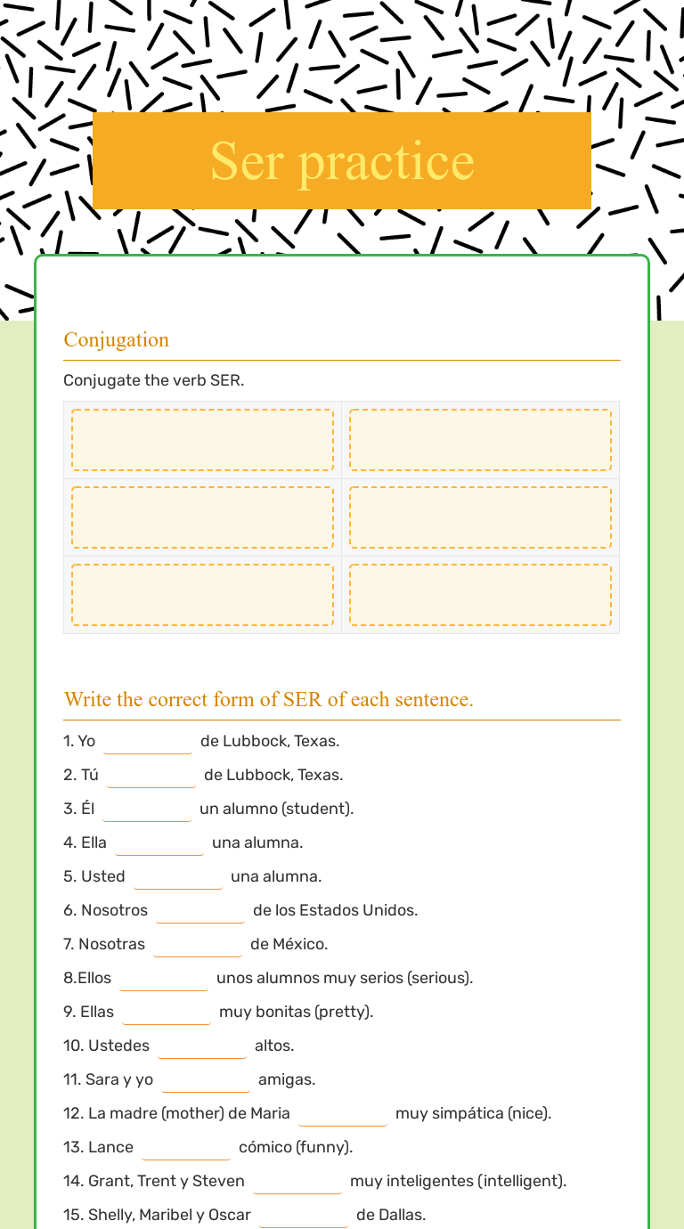 Ser practice Interactive Worksheet by Jennifer May Wizer.me