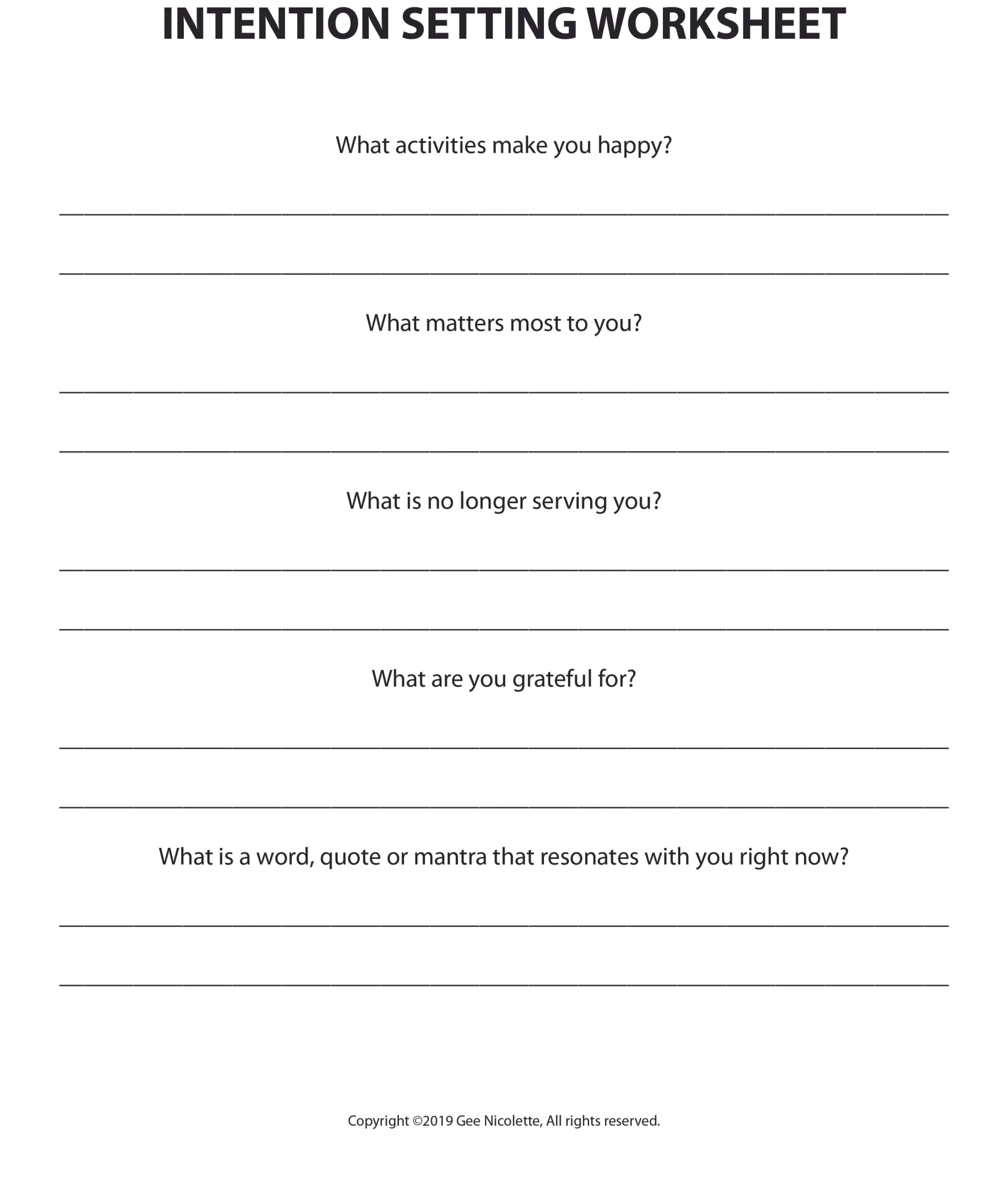 Setting Intentions Worksheet - Jot them down in your journal to. Intentions put the power of change in your own hands and enable you to create an. They make you more mindful of. Web download free intention setting worksheet to set goals & intentions what's your goddess personality ? Web intentions are internally focused. Intentions set the framework for who you are and how you show up for yourself each and every day. Web free collection of intention setting worksheets for students. Help kids put any mistakes from yesterday. Start here by setting intentions in important life categories. You create what this next year looks and feels like! Help kids put any mistakes from yesterday. This worksheet helps kids set an intention for today to be a good day! Web learn how to set intentions so that you can identify your priorities, manage your time, and get the resources you need to achieve your dreams. S e t t i n g m i n d f u. Web free collection of intention setting worksheets for students. Paying closer attention to your intentions can change your life in the most amazing ways. Start here by setting intentions in important life categories. They make you more mindful of. C o m d r. Jot them down in your journal to. Resiliency mental health by dr amy marschall. This worksheet helps kids set an intention for today to be a good day! Web use the following exercise to to associate intentions with actions. Web take a moment and sense into your body. Web 5 reasons to set intentions: What are you aware of? C o m d r. Intentions set the framework for who you are and how you show up for yourself each and every day. You create what this next year looks and feels like! Web use the following exercise to to associate intentions with actions. Manifesting is easier than you think! Intention setting word association reflection love let go of take. Web learn how to set intentions so that you can identify your priorities, manage your time, and get the resources you need to achieve your dreams. Be positive and affirming your intentions should. Do you have any thoughts? Web download free intention setting worksheet to set goals & intentions what's your goddess personality ? Intention setting word association reflection love let go of take. What are you aware of? They state how you intend to feel right now. This worksheet helps kids set an intention for today to be a good day! Web this ‘acting with intention’ worksheet is a simple practice to help us realign with whatever it is we are doing. They state how you intend to feel right now. Learn how to set an intention each. Web want to become a power manifestor? If so, what are they? Web use the following exercise to to associate intentions with actions. Web download free intention setting worksheet to set goals & intentions what's your goddess personality ? C o m d r. Paying closer attention to your intentions can change your life in the most amazing ways. Intentions put the power of change in your own hands and enable you to create an. We can also explore intention setting as a formal practice. Jot them down in your journal to. Dreams are also dormant, waiting to. Setting intentions worksheet the journey towards your dreams. Manifesting is easier than you think! Jot them down in your journal to. Complete each sentence with a word or phrase. Be positive and affirming your intentions should say what you want, not what you don’t want. S e t t i n g m i n d f u l i n t e n ti o n s. Web take a moment and sense into your body. Web learn how to set intentions so that you can identify your priorities, manage your time, and get the resources you need to achieve your dreams. Intention setting word association reflection love let go of take. Web want to become a power manifestor? Setting intentions worksheet 2.0 author: Web 5 reasons to set intentions: Web intentions are internally focused. Paying closer attention to your intentions can change your life in the most amazing ways. Intentions set the framework for who you are and how you show up for yourself each and every day. Start here by setting intentions in important life categories. Learn how to set an intention each. Resiliency mental health by dr amy marschall. Dreams are also dormant, waiting to. Intentions describe how you would like to show up and experience something, and setting intentions can be a great way to stay mindful. Web this ‘acting with intention’ worksheet is a simple practice to help us realign with whatever it is we are doing. Manifesting is easier than you think! Web intention setting helps us pay attention to the 50 bits that best serve us, by setting an instruction for your brain to refocus your conscious processes. We can also explore intention setting as a formal practice. Do you have any thoughts? C h r i s j o h n s o n. You create what this next year looks and feels like! Web take a moment and sense into your body. Web free collection of intention setting worksheets for students. Web want to become a power manifestor? Learn how to set an intention each. C o m d r. What are you aware of? Web 5 reasons to set intentions: Learn how to set intentions and create a life vision for clarity, direction and alignment in your life so you can be more present, happier. They make you more mindful of. Do you have any thoughts? Intentions describe how you would like to show up and experience something, and setting intentions can be a great way to stay mindful. Web use the following exercise to to associate intentions with actions. Web intentions are internally focused. Start here by setting intentions in important life categories. They state how you intend to feel right now.20212022 Reflection & Intention Worksheets The Mantra Collective