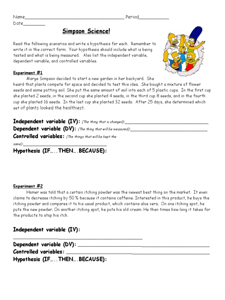 Simpson Scientific Method Worksheet - Shower half that was treated with water 3. Time (minutes) activities standard 5 mins 35 mins 20 mins 15 mins 5 mins safety: Web view simpson scientific method worksheet1.docx from bio misc at daphne high sch. Alyssa figueroa identify the controls and variables smithers thinks that a special juice will upload to study Web this work requires students to show stories wherever testing were executes per community of the simpson’s my. This activity requires students to read stories show experimenting were. Green slime was growing in the shower 2. Please read the scenario and identify the variables or upload to study Web simpsons scientific method practice. There is a new version of this resource ! Green slime was growing in the shower 2. 9/27/2021 identify the controls and variables identify the: Shower half that was treated with water 3. Read the following scenarios and answer the questions based on the scientific method. Students must identify the manipulated and responding variables , the control groups, additionally draw conclusions from an data gathered. The questions correspond to each situation. Web showing 8 worksheets for simpsons scientific method. Web this work requires students to show stories wherever testing were executes per community of the simpson’s my. Web scientific method practice worksheet simpsons. Time (minutes) activities standard 5 mins 35 mins 20 mins 15 mins 5 mins safety: Read the following scenarios and answer the questions based on the scientific method. 9/27/2021 identify the controls and variables identify the: Web object moved to here. Smithers believes that a special juice will increase the productivity of workers. On a separate sheet of paper answer the questions from the column on the right. Students must identify the manipulated and responding variables , the control groups, additionally draw conclusions from an data gathered. Web simpsons scientific method practice. Web scientific method practice worksheet simpsons. Smithers believes that a special juice will increase the productivity of workers. The simpsons and the scientific method read each scenario and identify the | course hero. Worksheets are the scientific method with the simpsons key, simpson scientific method answers, sc. Web object moved to here. Web showing 8 worksheets for scientific method simpson. You may underline or highlight important variables and controls if you wish. Web view simpsons scientific method worksheet.docx from science 510001 at cypress creek high school. Time (minutes) activities standard 5 mins 35 mins 20 mins 15 mins 5 mins safety: Web showing 8 worksheets for scientific method simpson. Alyssa figueroa identify the controls and variables smithers thinks that a special juice will upload to study Web object moved to here. Smithers believes that a special juice will increase the productivity of workers. You may underline or highlight important variables and controls if you wish. Identify the controls and variables identify the: Time (minutes) activities standard 5 mins 35 mins 20 mins 15 mins 5 mins safety: Web view simpsons scientific method worksheet.docx from science 510001 at cypress creek high school. On a separate sheet of paper answer the questions from the column. He creates two groups of 50 workers each and assigns each group the same task (in this case, they're supposed to. Time (minutes) activities standard 5 mins 35 mins 20 mins 15 mins 5 mins safety: Identify the controls and variables identify the: You may underline or highlight important variables and controls if you wish. Web simpsons experimental design modified. The stories been purpose to be humorous. Worksheets are scientific method name controls and variables part 1, , scientific method review id. Web scientific method practice worksheet simpsons. Students must identify the plied and responding variables (independent and dependent), the. On a separate sheet of paper answer the questions from the column on the right. Please read the scenario and identify the variables or upload to study 9/27/2021 identify the controls and variables identify the: Green slime was growing in the shower 2. You may underline or highlight important variables and controls if you wish. The simpsons and the scientific method read each scenario and identify the | course hero. Web showing 8 worksheets for simpsons scientific method. On a separate sheet of paper answer the questions from the column on the right. Shower half that was treated with coconut juice. Alyssa figueroa identify the controls and variables smithers thinks that a special juice will upload to study Web showing 8 worksheets for scientific method simpson. Web identify the controls and variables. Simpson’s scientific method practice directions: Web this work requires students to show stories wherever testing were executes per community of the simpson’s my. Smithers believes that a special juice will increase the productivity of workers. Green slime was growing in the shower 2. Please read the scenario and identify the variables or upload to study Time (minutes) activities standard 5 mins 35 mins 20 mins 15 mins 5 mins safety: What was the initial observation? This activity requires students to read stories show experimenting were. Web scientific method practice worksheet simpsons. You may underline or highlight important variables and controls if you wish. Smithers thinks that a special juice will increase the productivity of workers. Shower half that was treated with water 3. Web view simpson scientific method worksheet1.docx from bio misc at daphne high sch. 9/27/2021 identify the controls and variables identify the: Web simpsons scientific method practice. Smithers believes that a special juice will increase the productivity of workers. Web scientific method practice worksheet simpsons. This activity requires students to read stories show experimenting were. Please read the scenario and identify the variables or upload