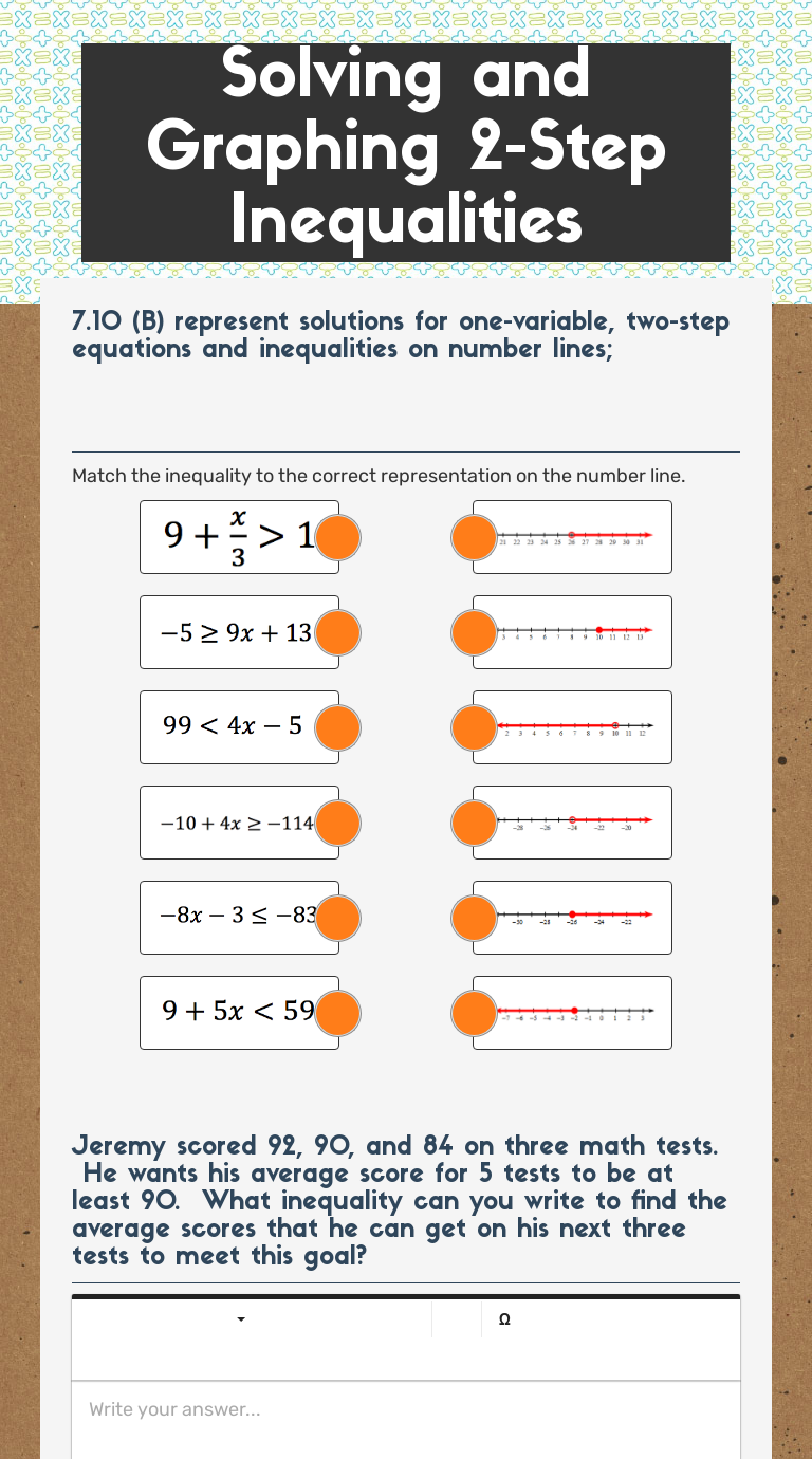 Solving and Graphing 2Step Inequalities Interactive Worksheet by