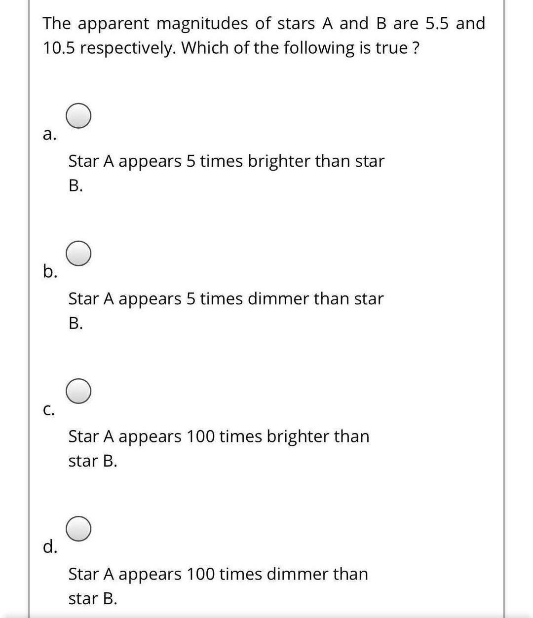 Solved The apparent magnitudes of stars A and B are 5.5 and