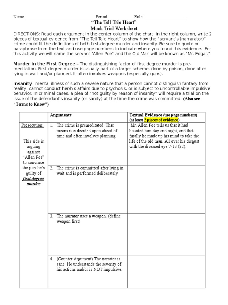 Criminal Trial worksheet
