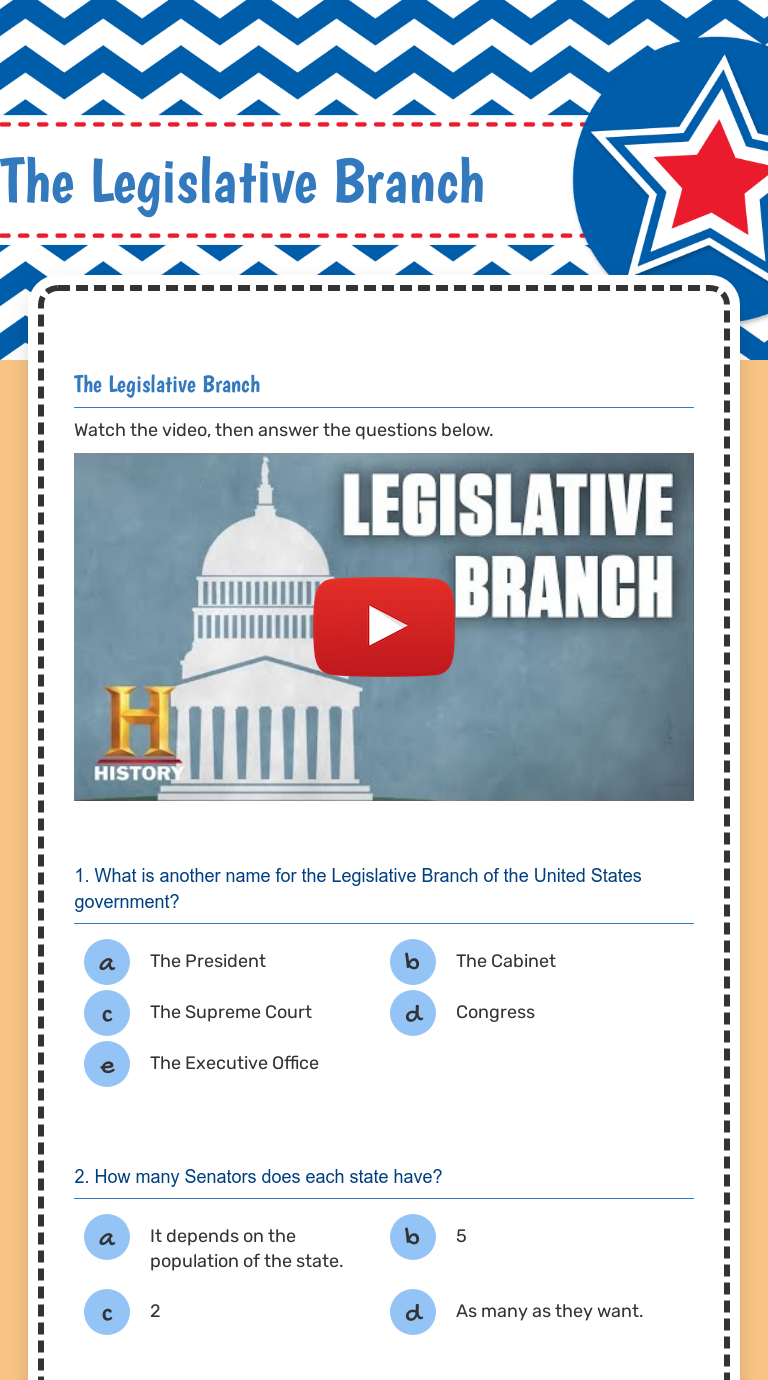 The Legislative Branch Interactive Worksheet by Chris Hatefi Wizer.me