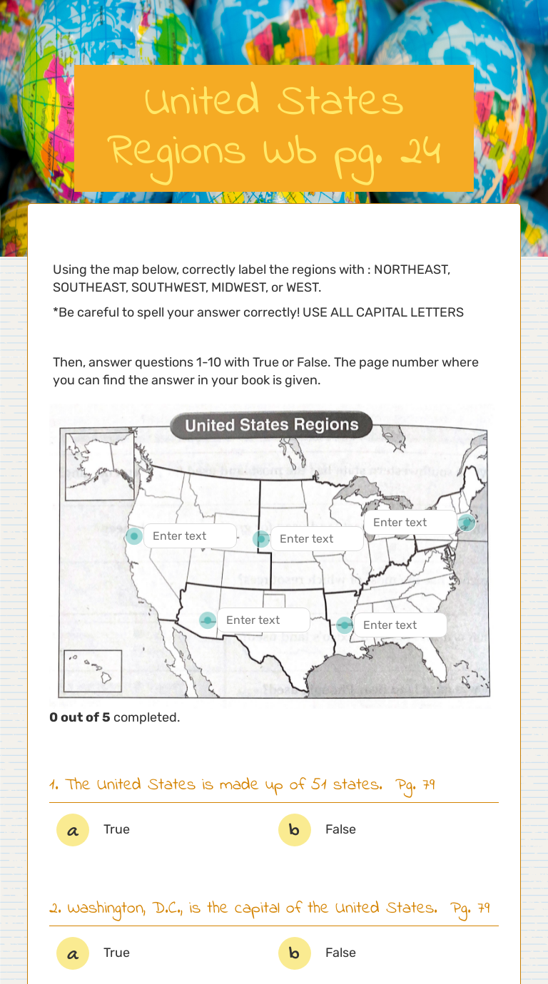 United States Regions Wb pg. 24 Interactive Worksheet by Lisa LeMaire