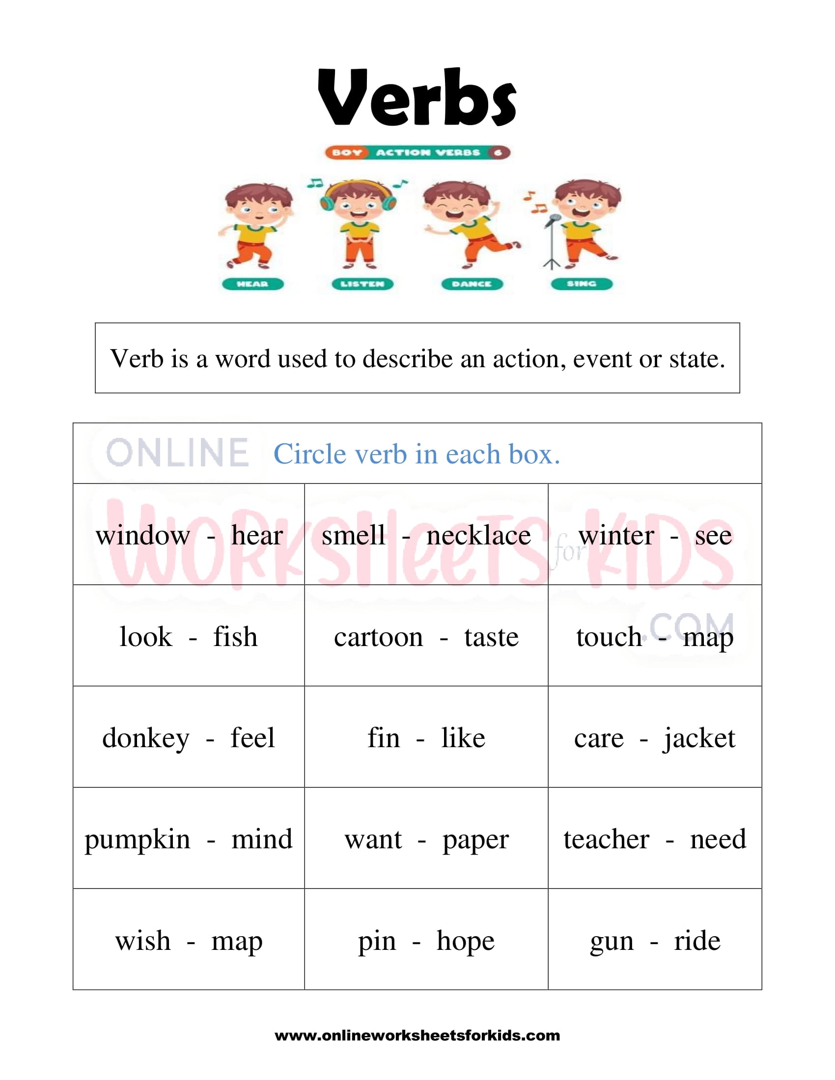 Verbs Worksheet For Grade 1 - Web learning first grade verbs is a basic need for every young learner who dreams of stars and sleeps on clouds, so print our verbs worksheets for grade 1 and let the learning begin. Circle the verbs worksheet 1 Ann is looking at her pet. Web grade 1 verbs worksheet answers: Web writing sentences with verbs worksheets. Students identify the verbs from a list of words. We __smile__ when we are happy. Students circle the present tense action verb in given sentences. Past, present and future tenses; The font style and size appropriate for grade 2 students. Identifying and using verbs is emphasized, and the past, present & future tenses are considered. These grade 1 grammar worksheets introduce verbs as action words. Students identify the verb from groups of words. English as a second language (esl) grade/level: Award winning educational materials designed to help kids succeed. Identifying action words and verbs; He is hopping like a rabbit. First grade students will enjoy learning about actions words as they color nouns and verbs, use verbs to fill in blanks in sentences, and as they write and illustrate sentences of their own! Worksheet #1 worksheet #2 worksheet #3. Award winning educational materials designed to help kids succeed. Web verbs online exercise for grade 1 live worksheets > english > english as a second language (esl) > verbs > verbs verbs this worksheet helps the kids to identify verbs. Kids encouraged to learn more about the topic and do a research using different sources. Identifying and using verbs is emphasized, and the past, present & future tenses are. Bear called raked swim grass fell reads hop smile verbs are “doing” words. Advanced level worksheet recommended for grades 5 and up. English as a second language (esl) grade/level: Aligned with reading wonders grade 2 unit 4 week 1 grammar. English as a second language (esl) grade/level: The verbs are all action words (not linking verbs). Web action verbs online exercise for grade 1 live worksheets > english > grammar > action verbs > action verbs finish!! Web present tense verbs worksheet grade 1. Web verb (grade 1)interactive worksheet (action verbs) for grade 1. The teacher _reads_______ us a book. English as a second language (esl) grade/level: Web action verbs worksheet 1. Web present tense verbs worksheet grade 1. The teacher _reads_______ us a book. First grade students will enjoy learning about actions words as they color nouns and verbs, use verbs to fill in blanks in sentences, and as they write and illustrate sentences of their own! These grade 1 grammar worksheets introduce verbs as words which do something. Advanced level worksheet recommended for grades 5 and up. In this grammar worksheet, your child learns that verbs are doing and being words, picks verbs out of a list, and completes sentences with the appropriate verb. Verbs ending in ed and ing grade 2 verbs worksheets. K, 1st. K, 1st print full size skills english grammar, learning about verbs, parts of speech In this grammar worksheet, your child learns that verbs are doing and being words, picks verbs out of a list, and completes sentences with the appropriate verb. This reading worksheet will help students practice their comprehension skills. Ann is looking at her pet. Web action verbs. I ______catch___ every ball that i can. Web identifying verbs as action words. Verbs link to this worksheet: Web grade 1 verbs worksheets. These grade 1 grammar worksheets introduce verbs as words which do something. These worksheets introduce verbs as action words. Web verb (grade 1)interactive worksheet (action verbs) for grade 1. A good exercise to reinforce the concept that every sentence needs a verb. These grade 1 grammar worksheets introduce verbs as words which do something. Identify words that do something. Web grade 1 verbs worksheet answers: Action verbs worksheets for grade 1 author: Verbs ending in ed and ing grade 2 verbs worksheets. Web learning first grade verbs is a basic need for every young learner who dreams of stars and sleeps on clouds, so print our verbs worksheets for grade 1 and let the learning begin. Web first grade verb worksheets teach children to identify verbs with this set of 5 worksheets. I ______catch___ every ball that i can. Circle the verbs worksheet 1 Award winning educational materials designed to help kids succeed. Students identify the verb from groups of words. This verbs worksheet pack is a no prep, printable worksheet pack designed to suit kindergarten, year 1 ( 1st grade ) and year 2 ( 2nd grade ). Past, present and future tenses; The teacher _reads_______ us a book. Advanced level worksheet recommended for grades 5 and up. Web this set of 3 worksheets provides practice identifying and writing with action verbs.worksheet 1: Identifying action words and verbs; Worksheet #1 worksheet #2 worksheet #3 worksheet #4 worksheet #5 similar: Web action verbs online exercise for grade 1 live worksheets > english > grammar > action verbs > action verbs finish!! Learning all about verbs in these key stages is integral to ensuring students academic success. He is jumping over the wall. We __smile__ when we are happy. Part of a collection of free grammar worksheets from k5 learning; In this grammar worksheet, your child learns that verbs are doing and being words, picks verbs out of a list, and completes sentences with the appropriate verb. He is jumping over the wall. Web grammar grade 1 verbs using verbs using verbs using verbs in sentences worksheets students identify the verbs from a list, and then use those verbs to complete simple sentences. English as a second language (esl) grade/level: The verbs are all action words (not linking verbs). He is hopping like a rabbit. Web first grade verb worksheets teach children to identify verbs with this set of 5 worksheets. Action verbs vs linking verbs; Award winning educational materials designed to help kids succeed. Web browse printable 1st grade action verb