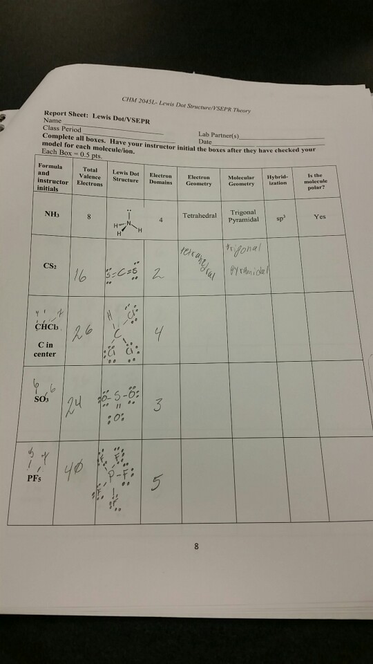 Solved CHM 2045L Lewis Dot Structure/VSEPR Theory Report...
