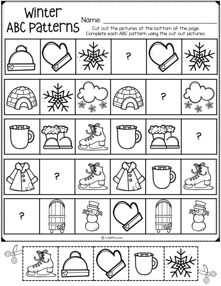 Winter Patterns Worksheet for Kindergarten Free Printable, Digital, & PDF