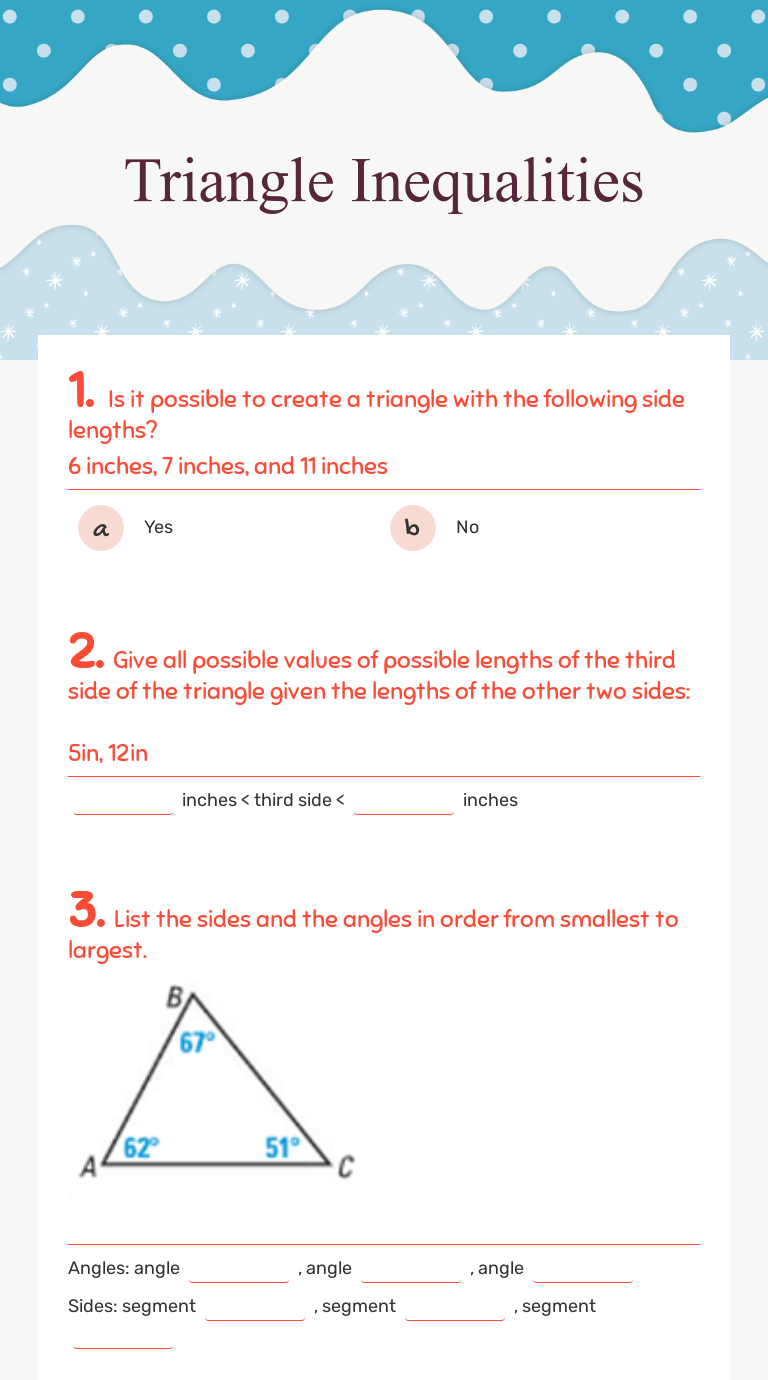 Triangle Inequality Practice Worksheet Printable Worksheet Template